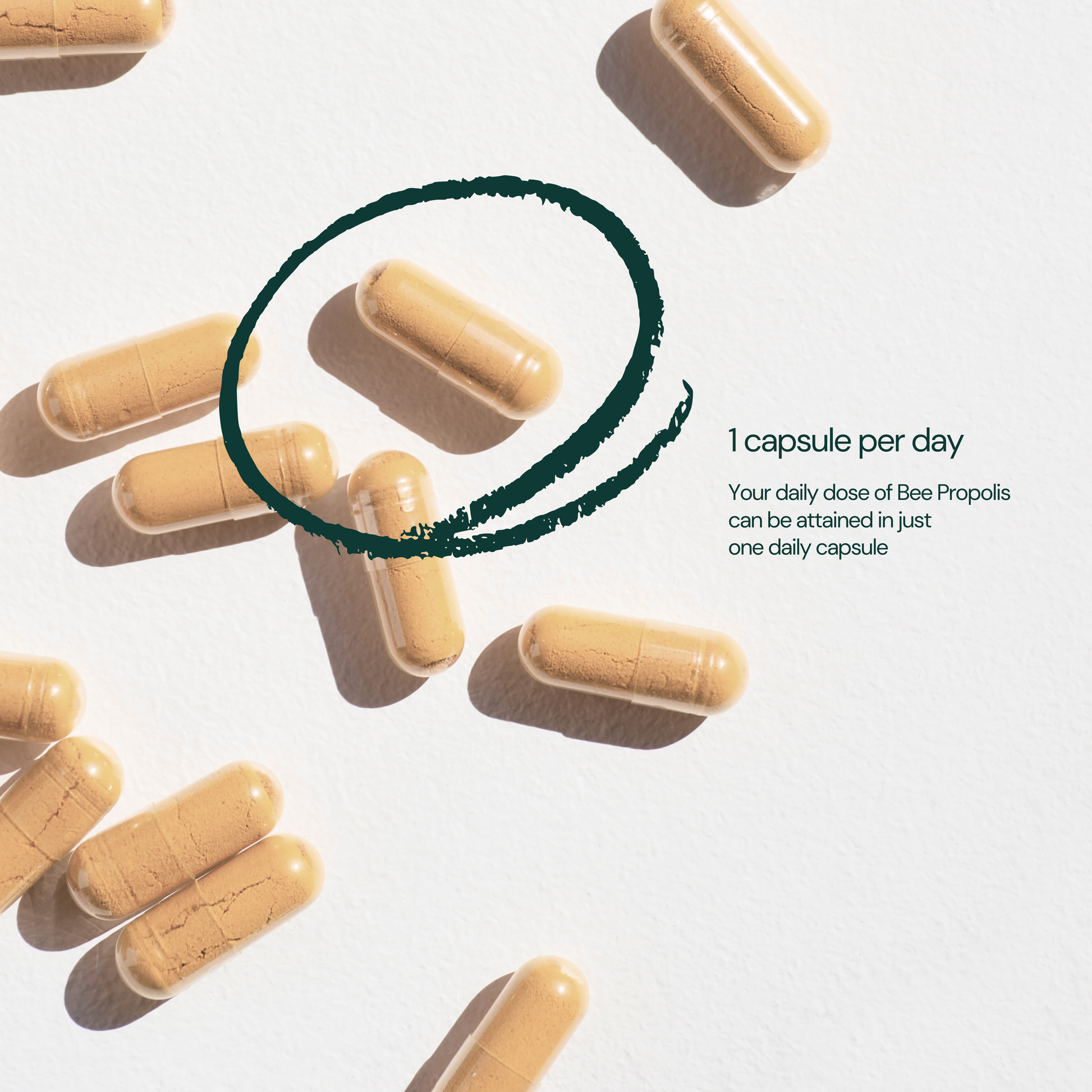 Each jar of Bee Propolis contains 60 capsules, providing a complete 2-month supply (60 days). Adults take 1 capsule per day, preferably alongside a meal, and don't exceed the recommended dose